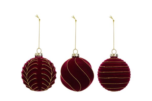 SET 3 PALLINE ASS.VETRO COL.BORDEAUX diam.10CM