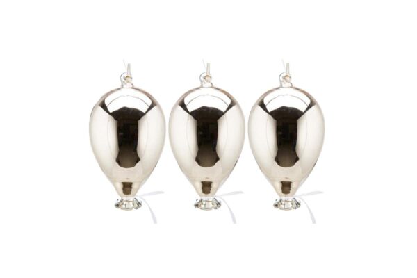 SET 3 PALLONCINI VETRO ARGENTO 7,5×12,5CM