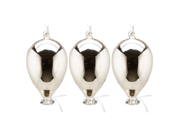 SET 3 PALLONCINI VETRO ARGENTO 8,5x14CM