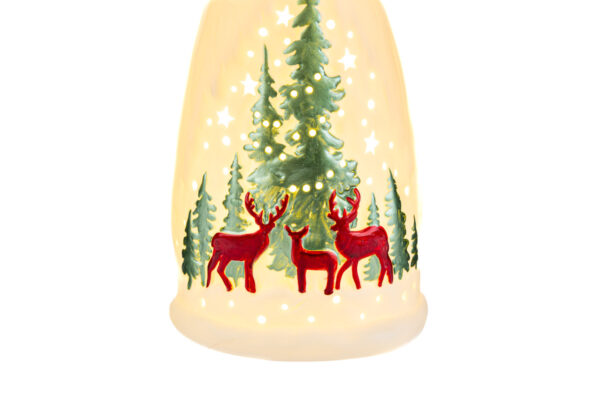 Elegante bomboniera natalizia in porcellana con luce LED, dimensioni 10,5×10,5xh.26 cm, ideale per decorare e impreziosire ambienti durante il periodo delle festività.