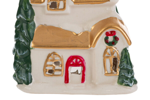 Casetta natalizia in porcellana con LED, misura 8,5x8xh.10 cm. Bomboniera ideale per il periodo natalizio, elegante punto luce decorativo per ambienti interni.