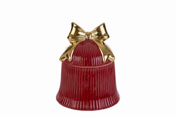 Scatola decorativa in ceramica rossa a forma di campana con fiocco, ideale come bomboniera per il periodo natalizio. Misure: 12x12xh.15,5 cm.