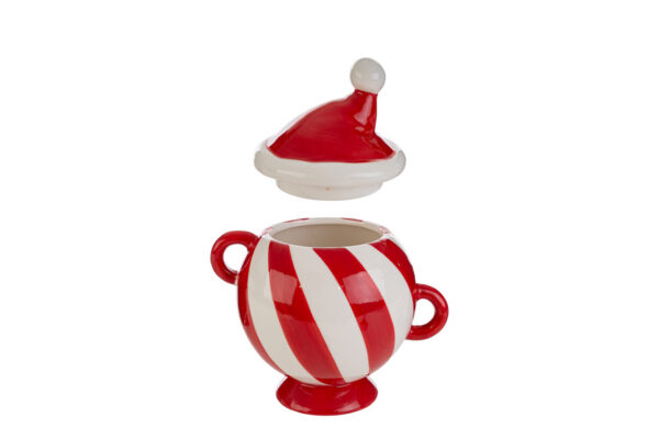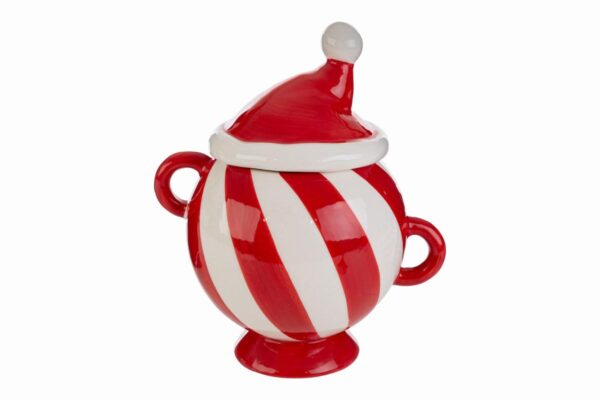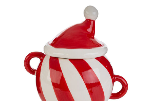 Barattolo natalizio in porcellana, ideale come bomboniera elegante per eventi aziendali e feste natalizie. Ottima scelta per valorizzare omaggi durante il periodo delle festività.