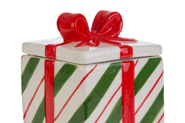 Barattolo natalizio in porcellana, ideale come bomboniera per il periodo natalizio. Perfetto per contenere dolci o piccoli regali con eleganza e stile moderno.