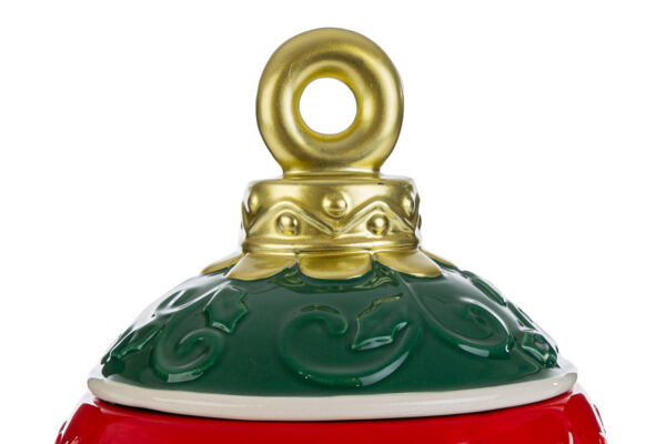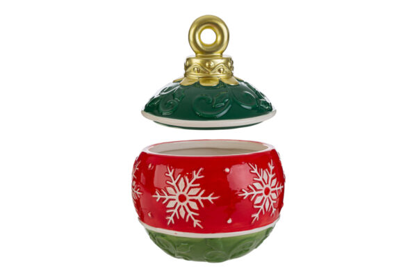 Barattolo natalizio in porcellana, diametro 18 cm e altezza 23 cm, ideale come bomboniera elegante e funzionale per eventi e regali nel periodo delle festività.