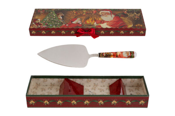 Elegante pala torta in porcellana con astuccio, ideale come bomboniera natalizia per celebrare eventi aziendali o ricorrenze durante il periodo delle festività.