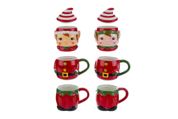SET 2 TAZZE + 1 SCATOLA ELFO CERAMICA 15×10,5xh.26CM