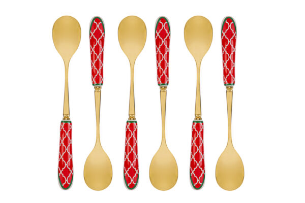 Set di 6 cucchiaini in metallo da 15 cm con astuccio, ideali come bomboniere natalizie per eventi aziendali, catering o negozi durante le festività.
