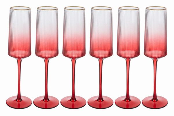 SET 6 PZ FLUTE VETRO COL.ROSSO
