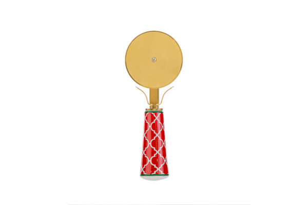 Taglia pizza in metallo da 15 cm, fornito con astuccio, ideale come bomboniera natalizia per aziende che desiderano offrire un regalo pratico e festivo.