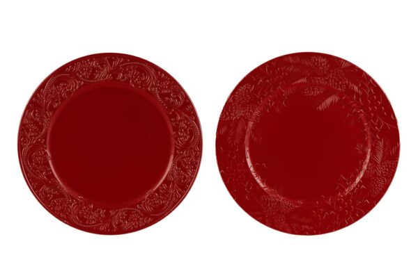 Vassoio in plastica rossa diametro 33 cm, ideale come bomboniera natalizia elegante e moderna, perfetto per presentazioni raffinate in contesti aziendali o eventi festivi.