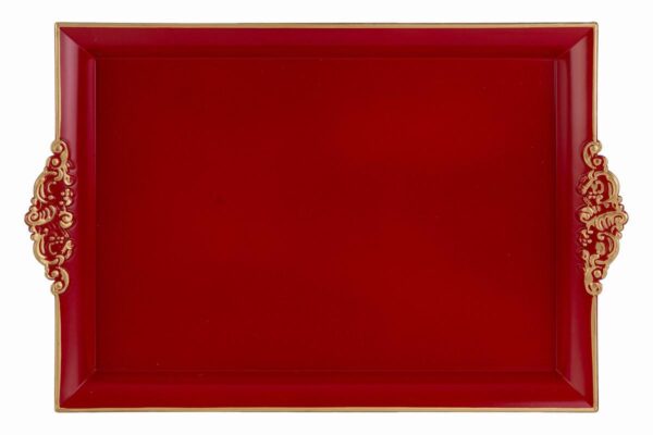 VASSOIO NATALIZIO MELAMINA ROSSO/ORO 40x26xh.3,5CM