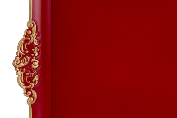 Vassoio natalizio in plastica rosso e oro, ideale come bomboniera per il periodo natalizio. Perfetto per allestimenti eleganti e presentazioni festive in contesti professionali.
