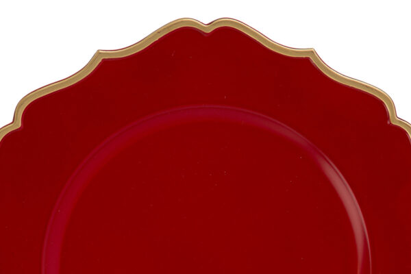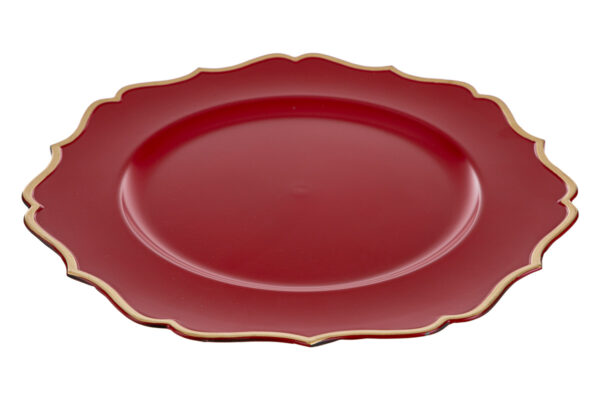 Vassoio natalizio in plastica rossa decorato oro, ideale come bomboniera elegante e funzionale per eventi e regali aziendali durante le festività natalizie.