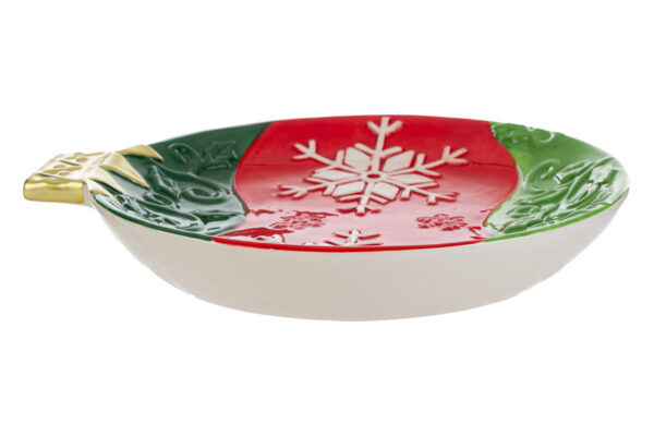 Vassoio natalizio in porcellana, ideale come bomboniera per il periodo delle feste; perfetto per impreziosire buffet aziendali o doni natalizi eleganti.