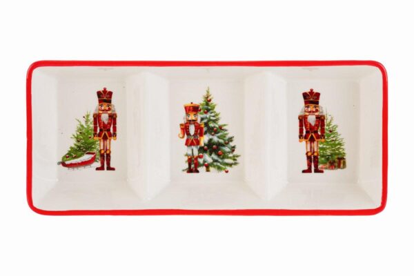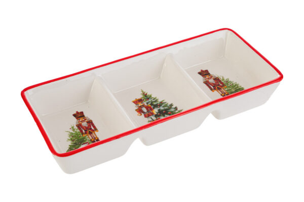 Raffinate atmosfere natalizie pervadono la tavola grazie al VASSOIO RETTANGOLARE PORCELLANA DEC.SCHIACCIANOCI 25x11x4CM. Realizzato in porcellana di alta qualità, offre resistenza e charme esclusivo alle presentazioni di dolci o antipasti durante le festività. Soluzione versatile che valorizza ogni mise en place natalizia.