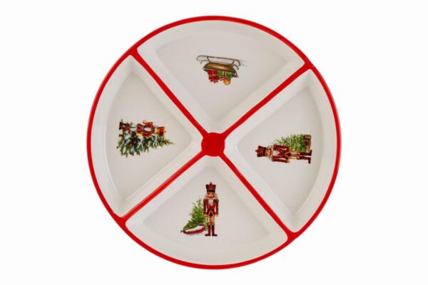 Sfumature natalizie che riscaldano l’atmosfera si riflettono su questo vassoio tondo in porcellana, decorato con il celebre schiaccianoci. Le dimensioni di 27,5 centimetri offrono spazio ideale per servire dolci e antipasti durante le festività. Un tocco raffinato per valorizzare la tavola a Natale.