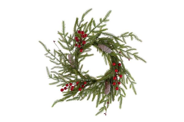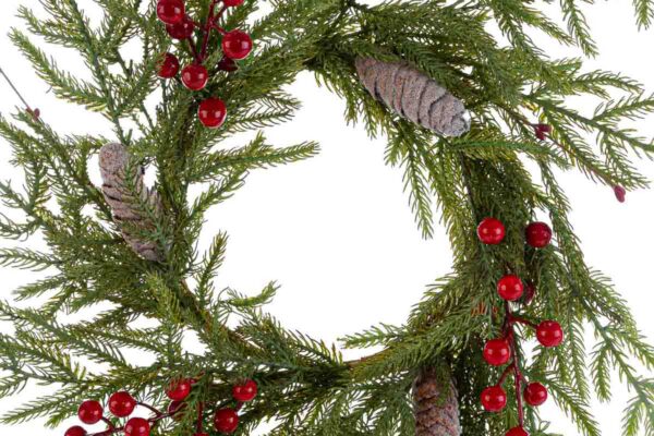 TRALCI E FIORIFUORI PORTA NATALIZIO BACCHE/PIGNE 70CM