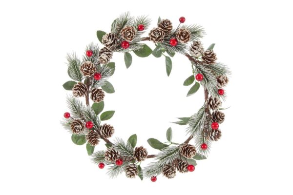 TRALCI E FIORIFUORI PORTA NATALIZIO BACCHE/PIGNE 50CM