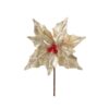 Stella Natale oro in stoffa, diametro 13 cm, dotata di stelo da 10 cm. Elegante bomboniera ideale per impreziosire doni e composizioni durante il periodo natalizio.