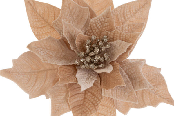 Stella natalizia in velluto color champagne, ideale come bomboniera elegante per il periodo natalizio, realizzata interamente in stoffa. Dimensioni: 28×50 cm.