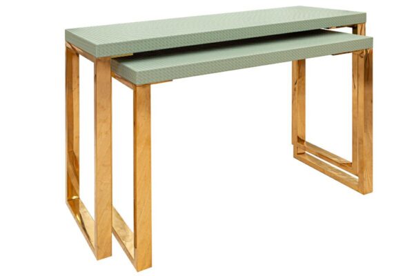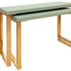 Set di due tavolini in legno color verde, dimensioni 120x37x79 cm. Perfetti per arredare spazi con freschezza e stile contemporaneo.
