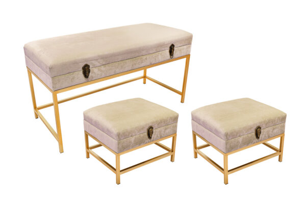 SET 3 PANCHINE METALLO IMBOTTITEC/CONTENITORE COL.BEIGE 90X40X47 CM