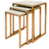 Set di tre tavolini in legno color cenere, dimensioni 46x40x62 cm. Perfetti per spazi moderni che richiedono versatilità e design sobrio.
