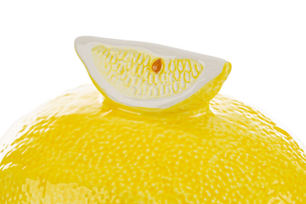 Raffinata scatola in ceramica decorata con un vivace motivo a limone, ideale per aggiungere un tocco di freschezza alla tua cucina. Misura 23x23xh16 cm, perfetta per conservare spezie o piccoli oggetti. L’accurata lavorazione artigianale garantisce qualità e stile che si integrano armoniosamente negli ambienti moderni.