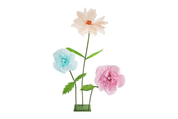 SET 3 FIORI DI CARTA h.max.173CMCELESTE/ROSA/SALMONE