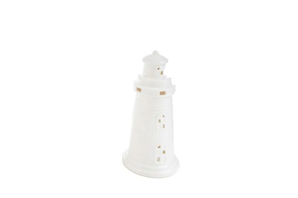 Ideale per creare un’atmosfera accogliente, la candela a forma di faro in porcellana bianca è perfetta per arredi moderni. Con dimensioni compatte di 8,5×8,5xh.18,5 cm e un design elegante, si integra facilmente in qualsiasi ambiente. Un tocco raffinato e distintivo per ogni spazio.