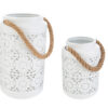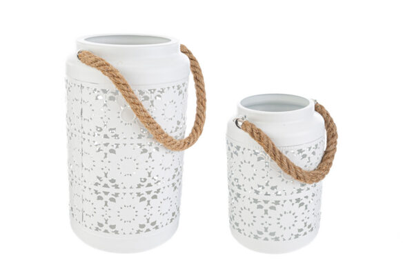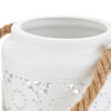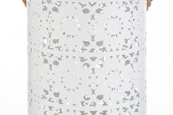 Dona un tocco elegante e raffinato ai tuoi ambienti con il portacandele in metallo bianco. Con dimensioni di 15x15xh25 cm, questo versatile accessorio si adatta perfettamente a ogni stile decorativo, creando atmosfere accoglienti e sofisticate. Il manico in corda ne facilita lo spostamento, combinando funzionalità e design chic.
