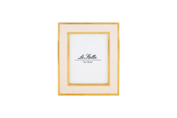 Portafoto in legno color panna, dimensioni 21x26x1,5 cm (misura interna 13×18 cm). Perfetto per ambienti accoglienti e di design sobrio.