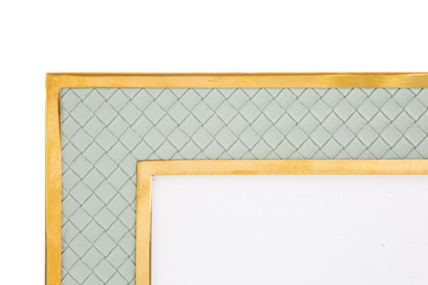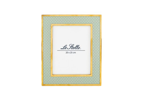 Portafoto in legno color verde, dimensioni 29x34x1,5 cm (misura interna 20×25 cm). Ideale per valorizzare ricordi con un design fresco.