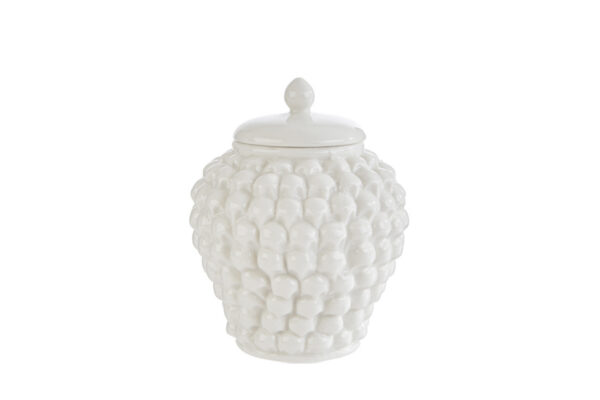 Elegante potiche in porcellana bianca da 12x12xh.15,5cm, perfetta per aggiungere un tocco di classe a qualsiasi spazio. Il suo design raffinato si adatta sia a contesti moderni che classici, garantendo funzionalità e stile senza tempo. Ideale per conservare piccoli oggetti o semplicemente come elemento decorativo.