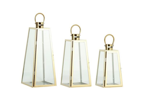 SET 3 LANTERNE METALLO ORO 14,5xh.27,5/18xh.38/22xh.48CM