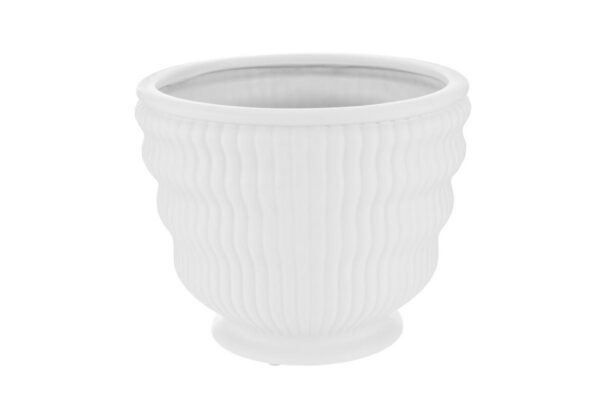 Il vasetto in ceramica bianco misura 23,5×23,5xh.19 cm ed è perfetto per arricchire qualsiasi ambiente con eleganza. Il suo design raffinato e la qualità della ceramica offrono un tocco di classe, ideale sia per interni che esterni. Un complemento d’arredo versatile e chic.