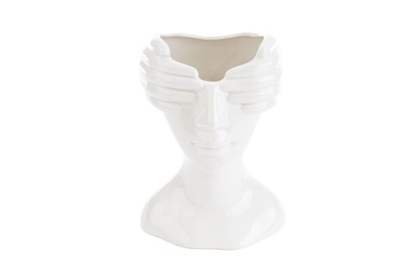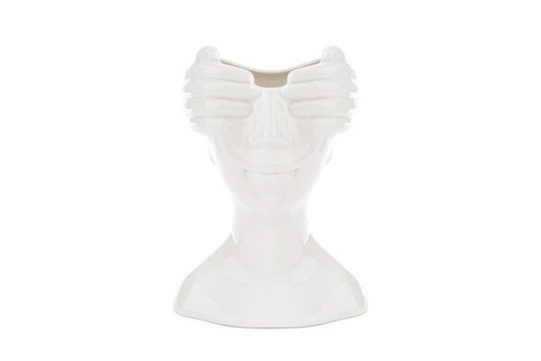 Elemento distintivo per qualsiasi ambiente, il Vaso in Porcellana con motivo viso aggiunge un tocco d’arte contemporanea alla tua casa. Misura 16x12xh.22 cm ed è realizzato in elegante porcellana bianca, ideale come centrotavola o decorazione raffinata in ogni spazio interno.