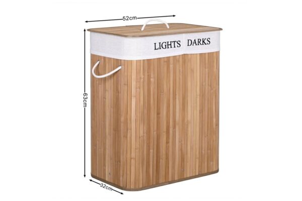 Distinguiti con il nostro Cesto Portabiancheria in vimini, 52x32xh.63cm, che offre due scomparti e una capacità di 100 litri. Perfetto per mantenere l’ordine in casa, consente di separare facilmente bianchi e colorati grazie alle chiare indicazioni “Lights” e “Darks”. Qualità superiore al miglior prezzo netto.