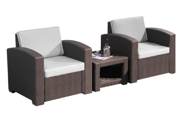 SET GIARDINO PVC GRIGIO TAVOLO /2 SEDIE C/CUSCINO *PREZZO NETTO*