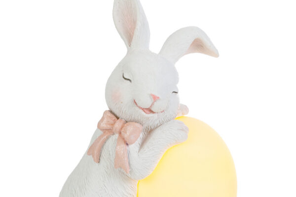 OGGETTISTICACONIGLIO PASQUA RESINA C/UOVO LED 16,5x10xh.19,5CM