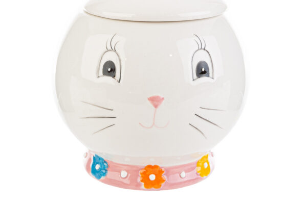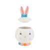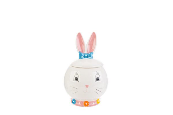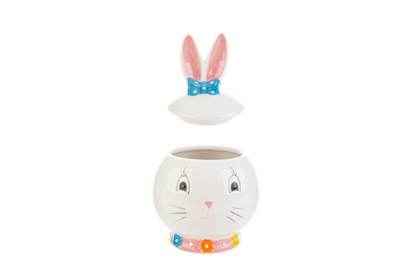 Scatola in porcellana a tema coniglio, dimensioni 12x12x18 cm. Perfetta per decorazioni primaverili e confezioni regalo eleganti.