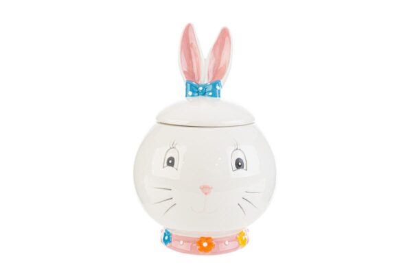 Scatola in porcellana con design di coniglio, dimensioni 16x16x23 cm. Ideale per confezionare piccoli doni o decorare tavole festive.